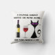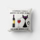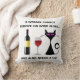 Humourous accent pillow with wine bottle, wine glass and quirky black cat with saying, A Woman Cannot Survive on Wine Alone - She Also Needs a Cat. Great for yourself or for your cat loving friend.