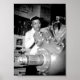 Woman in aircraft factory during World War Two works on plane engine. Vintage photograph image in public domain.