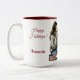 Woman, Gift Wrapping & Sipping Coffee Two-Tone Coffee Mug