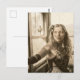 Woman in a Greenhouse Sepia Vintage Postcard