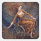 A woman in a beautiful golden dress sits in a wheelchair and joyfully dances AI generated art