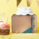 Woman in blue bralette holding sunglasses putting wrapping paper