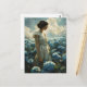 Woman in Blue Hydrangea Field: Vintage Beauty Postcard