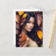 Woman in fall leaves, Postcrossing Postcard, Postcard, Postcrosser, Postcrossing, woman, portrait postcard, fall, fall postcard, leaves, AI Generation, generativecontent, seasons, adorable postcard