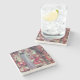 The coasters are gorgeous, a quality feel and heavy weight. They look like a precious archeological find. A rustic stone juxtaposed with a modern floral black and white print. I like the way the print goes slightly imperfect on the cut stone edges giving them a kind-of natural beauty.