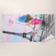 Beach Towels with Pretty Lady with Pink Heart Balloon In Paris Eiffel Tower - Drawing - Choose / Add Your Unique Text / Font / Colour - Make Your Special Gift - Resize and move or remove and add elements - Image / text with customisation tool ! - Drawing and Design by MIGNED. You can also transfer my designs to more than 1000 Zazzle products. Enjoy - Be Happy :)