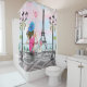 Shower Curtains with Pretty Woman with Pink Heart Balloon - I Love Paris - Eiffel Tower Romantic Drawing Shower Curtsin - Customisable - or Choose / Add Your Unique Text / Font / Colour - Make Your Special Gift - Resize and move or remove and add elements - Image / text with Customisation tool ! - Drawing and Design by MIGNED. You can also transfer my designs to more than 1000 Zazzle products.