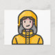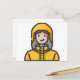 woman in raincoat postcard
