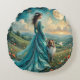 Woman in Turquoise Dress and Sable Rough Collie Round Cushion