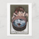 Woman Looking in Wood Barrel Postcard