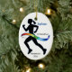 Woman Marathon Autism Puzzle Rainbow Ribbon Ceramic Ornament