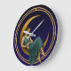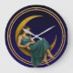 A woman sleeping on a crescent moon in a star filled night sky. You can cutomize the background colour as well as the colour and placement of the stars.