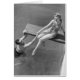 Woman sitting on diving board, man grasping her hand (B&W), elevated view | George Marks | AssetID: 72131088