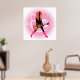 A woman in pink and black plains a guitar. This design looks really effective on these Poster