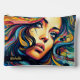 This is a fun accessory pouch in a pop art style of a woman's face in vibrant colours. This pouch can be used for a variety of things such as a makeup bag, travel kit, pencil case and more. The name on the pouch is customisable and would make a fun personalised gift.