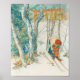 Woman in the birch trees putting on her cross country skis. Vintage fine art watercolor by Swedish painter Carl Larsson.