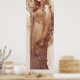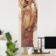 This beautiful poster features a crayon sketch based on Alphonse Mucha's 1897 pencil sketch series, which were originally created as a calendar designs. However, the calendar part was removed, and the sketch became a popular decorative panel sold under the title "Evocation" in 1898. The sketch portrays a floating woman in a light cloth dress, rendered in delicate sketched lines, showcasing Mucha's unique style. The drawing captures Mucha's dreamy vision of a spiritual being, a motif he had been pursuing since the early 1890s. Interestingly, Mucha was close to the Spiritualists' circle in Paris during that time, often participating in psychic experiments in his studio using a medium. The woman's fixed gaze and rigid posture show the influence of such experiments.