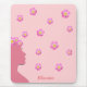 Pink woman silhouette, pink flowers and calligraphy on light pink background.