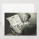Woman sitting in armchair, reading newspaper, smiling, (B&W) | George Marks | AssetID: 57539557