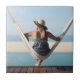 Woman Sitting On A Hammock At A Small Hotel Tile