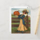 Woman Smiling Jack O' Lantern Pumpkin Farm Postcard