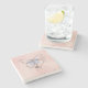 The coasters are gorgeous, a quality feel and heavy weight. They look like a precious archeological find. A rustic stone juxtaposed with a modern floral black and white print. I like the way the print goes slightly imperfect on the cut stone edges giving them a kind-of natural beauty.