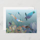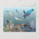 Woman swimming underwater with turtle postcard