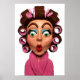 Clay figure of woman wearing curlers made using polymer clay that is baked in an oven and painted with acrylics. The final product is photographed and digitally enhanced.