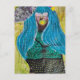 Woman With Blue Hair Mixed Media Collage Postcard