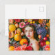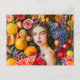 Woman with citrus fruits and flower garland postcard