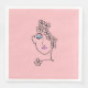 Woman With Flowers Line Art Pink Napkin