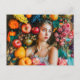 Woman with grapes and floral arrangement postcard