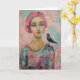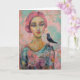 Woman with Pink Hair and a Bird on her Shoulder Card