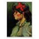 Portrait of a Woman with Red Ribbon by Vincent van Gogh is a vintage fine art post impressionism daily life portrait painting featuring a dark haired brunette lady in profile with red ribbons in her hair.