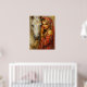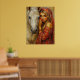 A vivid fine art print of a woman beside a white horse. This stunning art piece brings warmth, emotion, and elegance to any living room or bedroom wall. A perfect boho or rustic decor accent.
