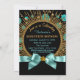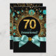 Womans 70th Birthday Party Teal Blue and Gold Invitation