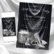 Womans black and silver birthday party invitation with pretty silver high heel shoes, perfume bottle and gifts on a beautiful black satin background. This womans black and silver birthday party invitation is easily customised for your event by simply adding your event details.
