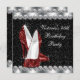 Elegant ruby red glitter high heel shoes and diamonds womans birthday party invitation. This beautiful black and ruby red 40th birthday party invitation is easily customised for your event by simply choosing the "Customise it!" button to begin adding your event details, font style, font size & colour, and wording. Please note - all of the stickers, cards and invitation designs you will find on Zazzle are printed graphics with no actual jewels, bows, raised, embossed, or added parts or pieces.