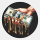 womans hand 100 dollar bill liquid gold dripping classic round sticker