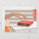 Womans hand pushing on alarm clock snooze button invitation