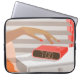 Womans hand pushing on alarm clock snooze button laptop sleeve