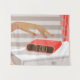 Womans hand pushing on alarm clock snooze button tapestry