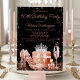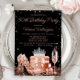 Womans rose gold birthday party invitation with pretty rose gold high heel shoes, perfume bottle, champagne glass, crown and gifts on a beautiful black glitter background. This womans rose gold birthday party invitation is easily customised for your event by simply adding your event details. You can change the background colour and the text colour.