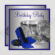 Womans Royal Blue and Silver Birthday Party Invitation