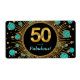 Woman's 50th birthday water bottle labels with pretty black and gold starburst and gold numbers on a beautiful teal blue black and gold background. You can add the text of your choice to personalise these pretty water bottle labels. You can also change the background colour. These are not water proof.
