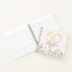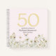 Celebrate in style with this elegant 50th Birthday Party guestbook, designed to remember the big day. The design features a shimmering golden “50” glowing softly in the background. A delicate border of watercolor white wildflowers and green leaves frames the bottom, all set against a soft pink background for a refined, timeless look. The party details are displayed in a crisp white serif font, ensuring easy readability and sophistication. Perfect for family members, this guestbook allows the name to be customised with ease. Thanks for your interest—give this design a like if you love it!