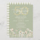 Celebrate in style with this elegant 50th Surprise Birthday Party Invitation, designed to keep the big day a secret until the very last moment. The design features the words “Shhh, it’s a Surprise” in a graceful script font, with “party” beneath and a shimmering golden “50” glowing softly in the background. A delicate border of watercolor white wildflowers and green leaves frames the bottom, all set against a soft green background for a refined, timeless look. The party details are displayed in a crisp white serif font, ensuring easy readability and sophistication. Perfect for family members, this invitation allows every detail—name, date, address, and RSVP—to be customised with ease.