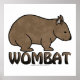 Who can resist the lure of the mysterious wombat? Wombat logo with shaded brown lettering, available on a wide assortment of t-shirts, sweatshirts, hats, mugs, buttons, magnets, stickers, and more.