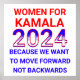 Kamala Harris for president in the US 2024 Presidential election. We want to move forward, not backwards.