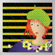 Original digital art featuring a woman wearing a jaunty green beret. Add a frame for a designer look. Select from 4 designs. Combine 2 or more to create a striking display.